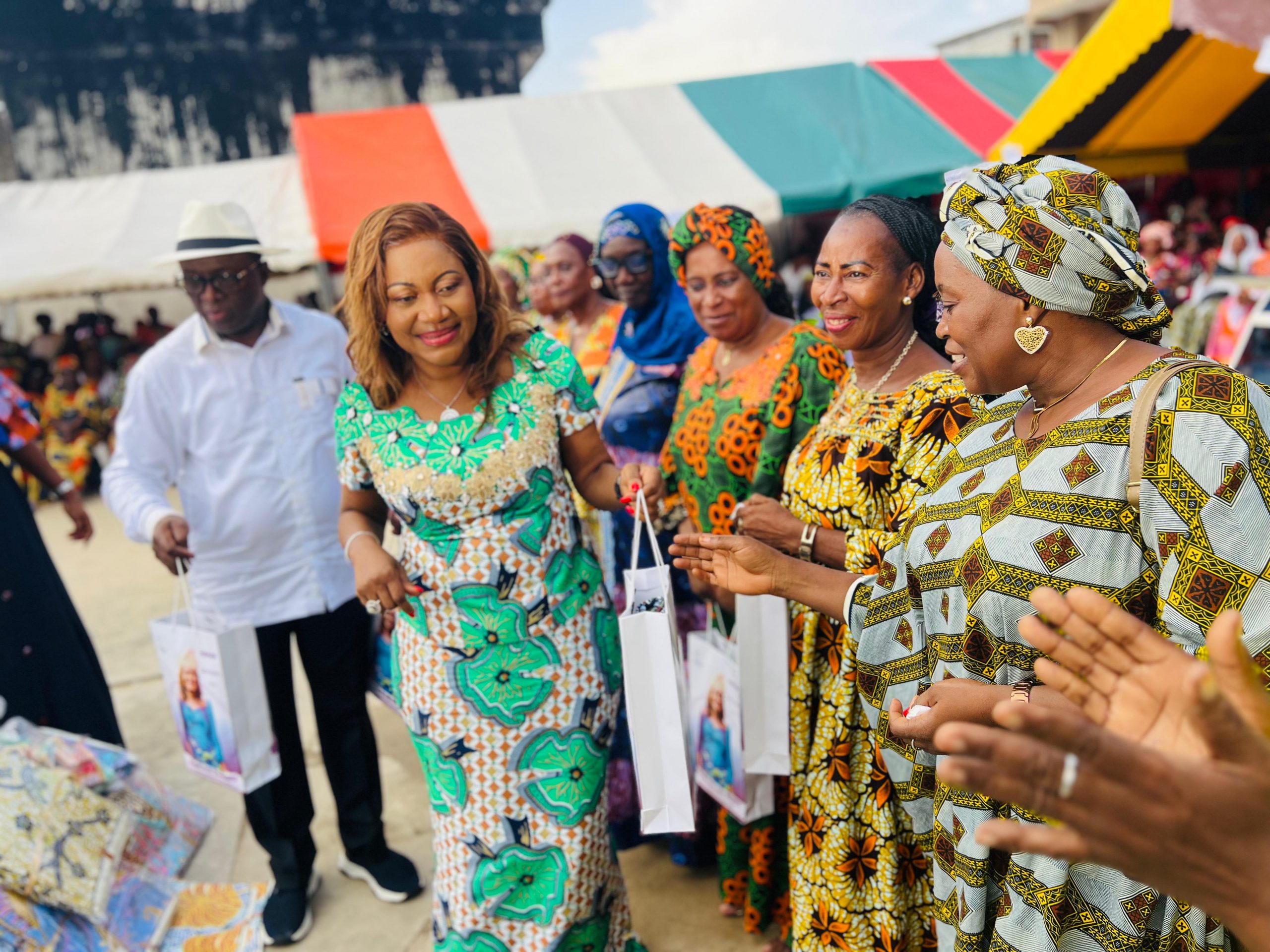 De nombreux cadeaux dont des pagnes et autres ont été offerts par l’épouse du Maire d’Attecoubé