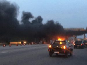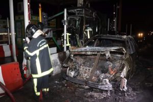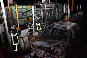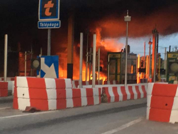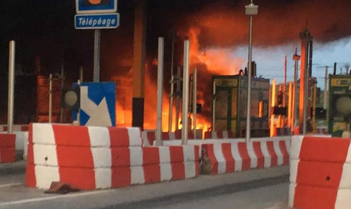 Autoroute du Nord/Le poste à péage d’Attingué en feu