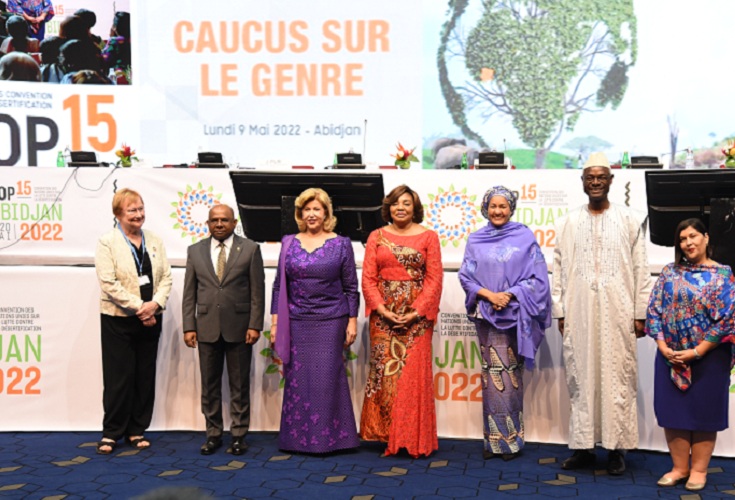 En marge de la 15ème Conférence des parties à la Convention des Nations Unies sur la lutte contre la désertification (COP 15) et en présence des Premières dames, de la Côte d’Ivoire, Dominique Ouattara et du Congo, Denise Tshisekedi, un caucus sur le genre s’est tenu ce lundi 09 mai 2022 à Sofitel à Abidjan Hôtel Ivoire sis à Cocody, en vue d’accélérer l’accès aux agricultrices à la gestion équitable des ressources terrestres.