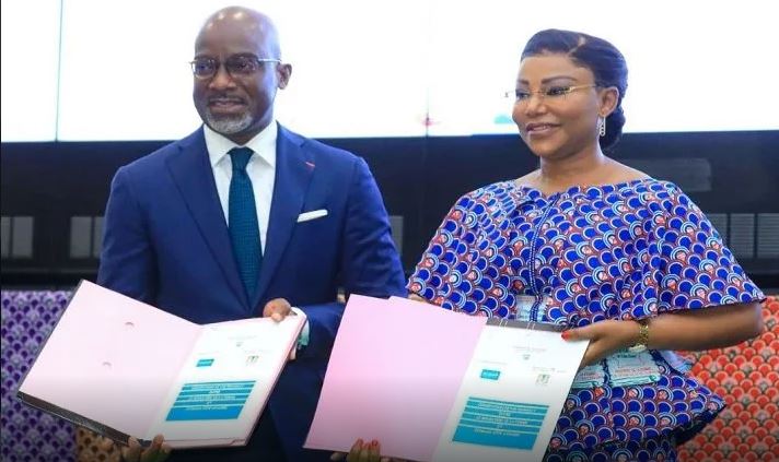 La ministre Nassenéba Touré ministre de la Femme, de la Famille et de l’Enfant et le Groupe Ecobank Côte d’Ivoire représenté par son Directeur général Paul Harry Aithnard ont signé une convention lors d’un panel de haut niveau en prélude à la Journée internationale de la Femme. Cette convention d’un montant de 3 Milliards octroyer par le Groupe Ecobank permettra à travers le Projet « ELLEVER » de booster les activités des femmes entrepreneurs de Côte d’Ivoire.