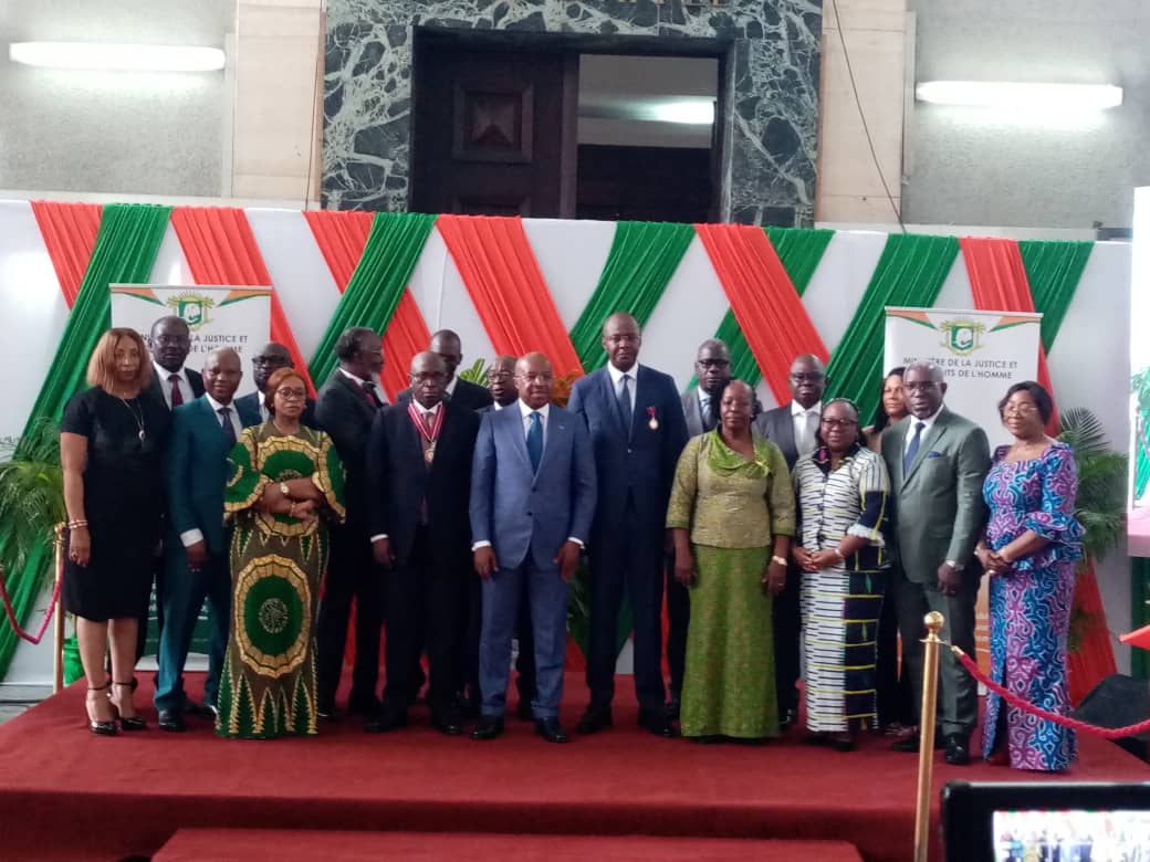 Le Ministre Sansan Kambilé a également félicité le Bâtonnier Maître Mentennon Claude et Monsieur Kouassi N’guessan Bernard, élevés au grade de Commandeur de l’Ordre du Mérite de la Justice. « Je voudrais adresser mes vives félicitations à Monsieur le Directeur de Cabinet et à Monsieur le Bâtonnier, qui vont recevoir les insignes de leur grade de Commandeur dans l’Ordre du Mérite de la Justice », a conclu le Ministre.