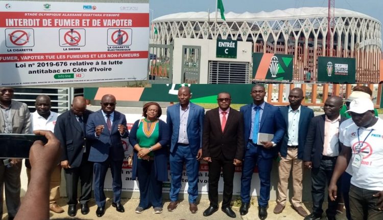 Le mercredi 10 janvier, le Stade Olympique Alassane Ouattara d’Ebimpé a été le lieu du lancement officiel de la campagne « Ivoire Can 2023 sans Tabac ». En collaboration avec le ministère de la Santé, de l’Hygiène Publique et de la Couverture Maladie Universelle ; le ministère des Sports et la Conférence des Médias contre le Tabagisme, l’Alcoolisme et la Toxicomanie (COMTAT-CI), cette campagne vise, au cours de cet événement sportif international, à sensibiliser en général la population et en particulier les jeunes et les sportifs sur les méfaits du tabagisme, ainsi que sur le respect de l’interdiction de fumer dans les lieux publics conformément aux textes réglementaires en vigueur, notamment le décret N°2012-980 du 10 octobre 2012.