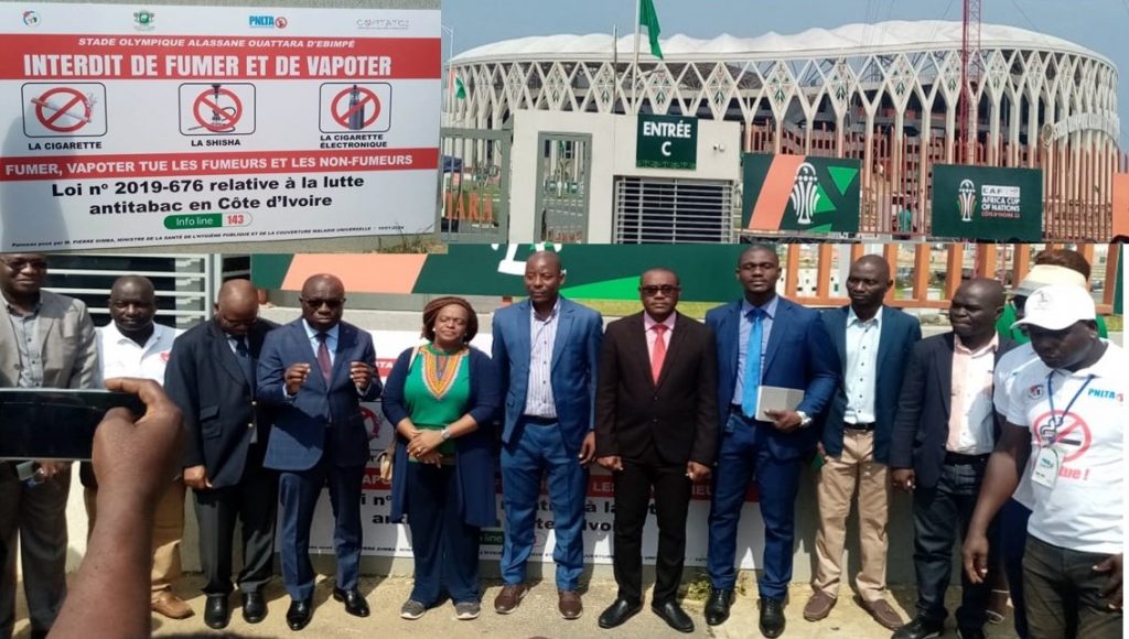 Le mercredi 10 janvier, le Stade Olympique Alassane Ouattara d’Ebimpé a été le lieu du lancement officiel de la campagne « Ivoire Can 2023 sans Tabac ». En collaboration avec le ministère de la Santé, de l’Hygiène Publique et de la Couverture Maladie Universelle ; le ministère des Sports et la Conférence des Médias contre le Tabagisme, l’Alcoolisme et la Toxicomanie (COMTAT-CI), cette campagne vise, au cours de cet événement sportif international, à sensibiliser en général la population et en particulier les jeunes et les sportifs sur les méfaits du tabagisme, ainsi que sur le respect de l’interdiction de fumer dans les lieux publics conformément aux textes réglementaires en vigueur, notamment le décret N°2012-980 du 10 octobre 2012.