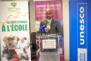La Côte d’Ivoire a franchi une nouvelle étape dans sa politique éducative avec la présentation officielle du rapport continental et du rapport national « Spotlight » sur les apprentissages fondamentaux, ce mercredi 9 avril 2026, à Abidjan-Plateau à la Salle de la Direction des examens et des concours (DECO). Organisée par le ministère de l’Éducation nationale, de l’Alphabétisation et de l’Enseignement technique, en partenariat avec l’UNESCO, l’Union africaine et le Rapport mondial de suivi sur l’éducation (GEM), cette cérémonie a réuni plusieurs acteurs du système éducatif, des partenaires techniques et financiers ainsi que des décideurs publics.