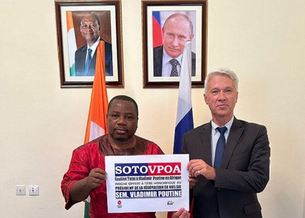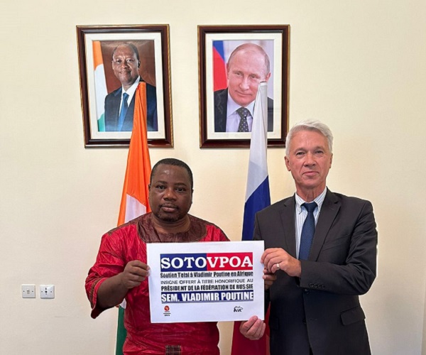 En remettant à l’ambassadeur de Russie à Abidjan, SEM. Alexey Saltikov , un parchemin de soutien indéfectible, destiné au président de la Fédération de Russie, l’écrivain ivoirien continue ainsi d’appuyer sa thèse selon laquelle « Poutine n’est pas le mal ».