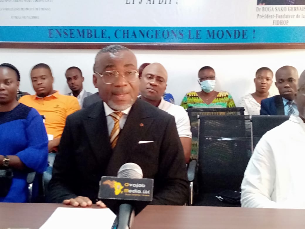 La Fondation Ivoirienne pour l’Observation et la surveillance de la vie politique (FIDHOP) a changé de dénomination. Sa nouvelle appellation est : Fondation Internationale pour l’Observation et la surveillance des Droits de l’Homme et de de la vie Politique (FIDHOP). Cette information a été donnée par Docteur Boga Sako Gervais, Président fondateur, par ailleurs Enseignant-chercheur à l’Université Alassane Ouattara de Bouaké, le vendredi 10 février 2023, au cours d’une conférence de presse, tenue au siège de ladite organisation sise à Cocody nouveau camps.