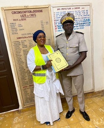 Le mardi 5 novembre 2024, dans les locaux de la sous-préfecture de Duékoué, Madame Gielen Georgette, connue sous le nom de « Maman Boya », opératrice économique et présidente de l’ONG Conscience Propre, a offert 10 registres d’état civil à la sous-préfecture centrale de Duékoué.