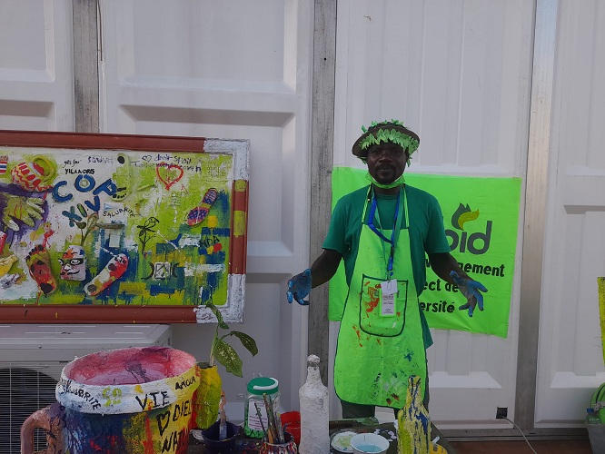 Son action à travers les événements l’envoie vers un public hétéroclite qui lui porte un regard souvent interloqué. C’est ainsi qu’il explique et justifie sa récente participation à la quinzième conférence des parties sur la lutte contre la désertification et la déforestation (Cop15). Sommet mondial au cours duquel il a offert des rubans verts, autre élément de son combat, à plus d’une centaine de participants et une toile acrylique à la Banque Africaine de Développement (BAD).