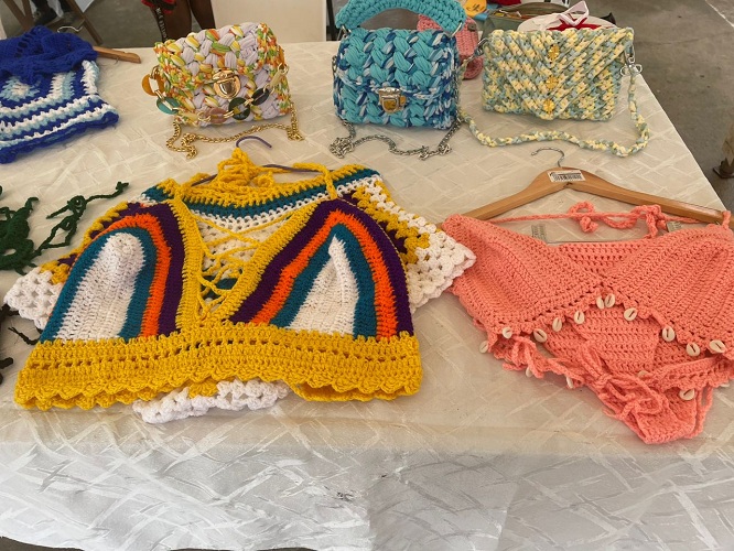 Malgré cette absence de visiteurs ils ont étalé la crème de leurs ouvrages ainsi que les matières premières nécessaires pour leur réalisation. Des articles de mercerie aux vêtements tricotés en passant par les accessoires rivalisent d’un étalage à l’autre.