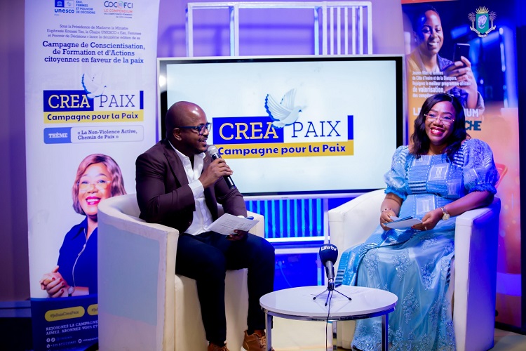Devant un public composé de journalistes, de jeunes, de femmes leaders et d’organisations de la société civile, elle a exposé une vision novatrice pour renforcer leur engagement dans la construction de la paix en Côte d’Ivoire et au-delà.