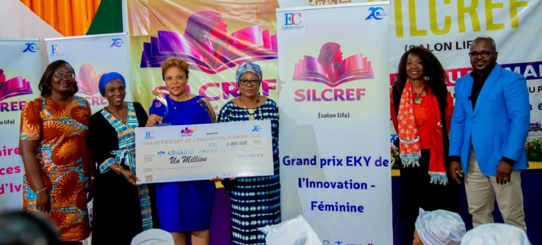 Fondée en 2024 par la Ministre Euphrasie Kouassi Yao, les Editions Egalité des Chances (EC) fait ses premiers pas publics au Salon du Livre et de la Création Féminine d’Abidjan, avec trois ouvrages déjà publiés dont un agréé par le Ministère de l’Éducation Nationale et de l’Alphabétisation de Côte d’Ivoire. Le Salon marque également l’histoire avec la remise du tout premier Grand Prix EKY de l’Innovation Féminine (1 000 000 FCFA) décerné à Mme Kouadio Akoua