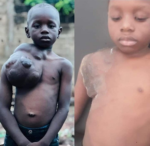 Grâce aux  bonnes volontés, le petit Seydou  s’est débarrassé de cette tumeur .