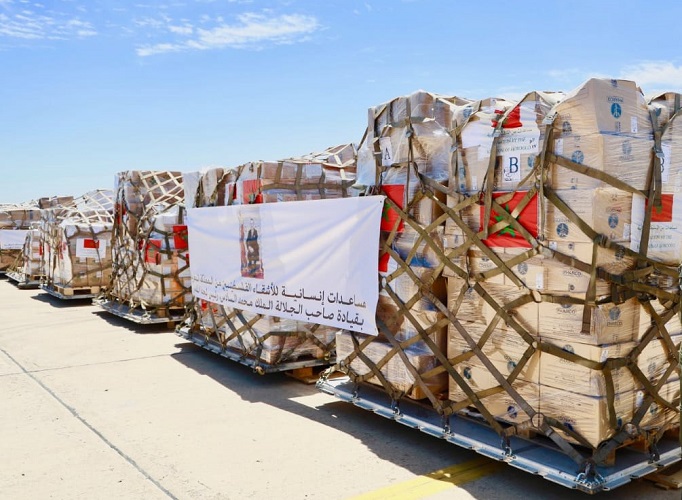 Cette aide ordonnée par Sa Majesté le Roi, que Dieu L’assiste, est composée de 40 tonnes de produits médicaux contenant, notamment, des dispositifs pour la prise en charge des brûlures, et des urgences chirurgicales et traumatologiques, ainsi que des médicaments de première nécessité. Ces produits médicaux concernent aussi bien les adultes que les enfants en bas âge.