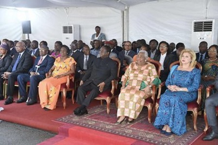 Reconnaissance nationale pour la Première des Premières Dames ivoiriennes Thérèse Félix Houphouët-Boigny, celle qui a marqué son époque de son rayonnement au plan international. Des mérites unanimement salués lors de cette cérémonie au cours de laquelle l’ex-Première a été élevée à la dignité de Grand Officier de l’Ordre du Mérite National. « Cette cérémonie est plus qu’importante pour moi. Je suis heureuse d’être de retour dans mon pays. Je remercie les présidents Bédié, Gbagbo et Ouattara qui ont pris soins de moi durant toutes ces années », a martelé Thérèse Félix Houphouët-Boigny.