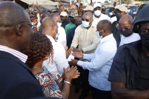 Cet accueil triomphal et tout cet amour manifesté ne l’ont pas laissé indifférent. Le Président Laurent Gbagbo, Président du PPA-CI, est descendu du véhicule présidentiel , a salué les officiels puis a fait quelques mètres à pied en saluant chaleureusement la foule.