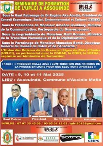 de Presse en Ligne de Côte d’Ivoire (UPL-CI). Cette rencontre instructive a pour thème : « Présidentielle 2025 : Contribution des Patrons de la presse en ligne pour des élections apaisées ».