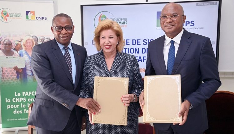 Mis à jour:10/05/2023-Hier mardi 9 mai 2023, a eu lieu au Cabinet de la Première Dame sis à Cocody la cérémonie de signature de la convention de partenariat entre le FAFCI et la Caisse Nationale de Prévoyance Sociale (Cnps).