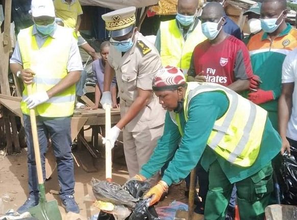 Munis de pelles, de poubelles, de râteaux, de brouettes et balais, les hommes en tenue, agents du service d’hygiène de la mairie et de la direction régionale de l’Hydraulique, de l’Assainissement et de la Salubrité ont mis à profit leur temps pour restaurer le périmètre du grand marché.