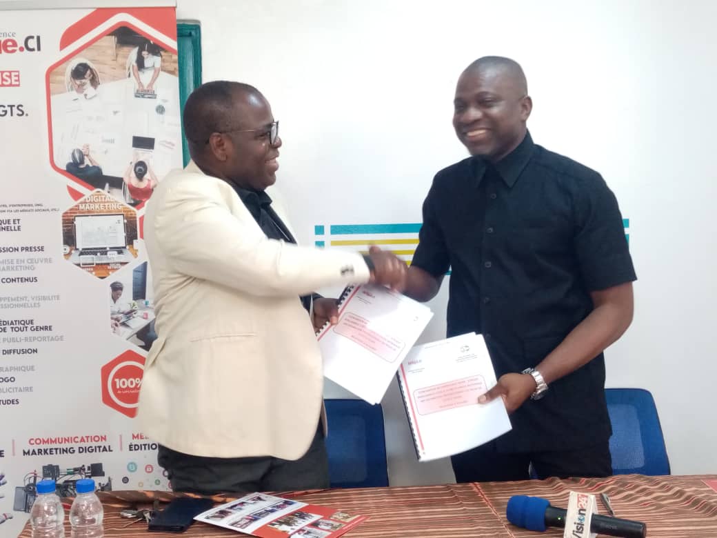 Herbert Koffi, Dg Afrique Intelligence(en noir à droite) Kouablan Omer Affian, président de Union Nationale des Techniciens et Professionnels du Froid de Côte d’Ivoire (UNTFP-CI) (veste blanc à gauche)